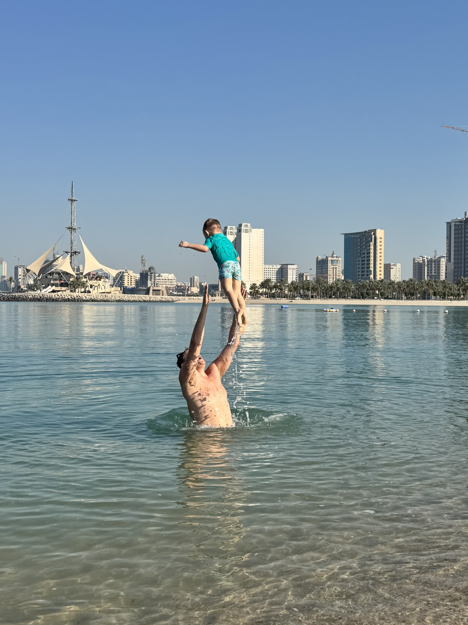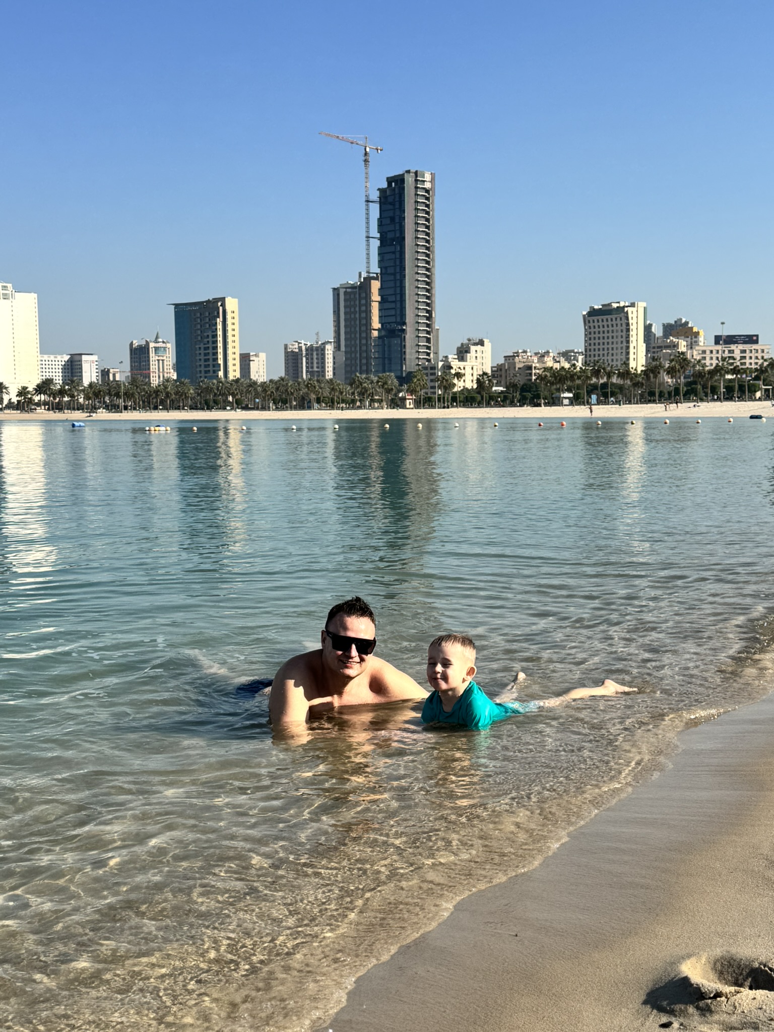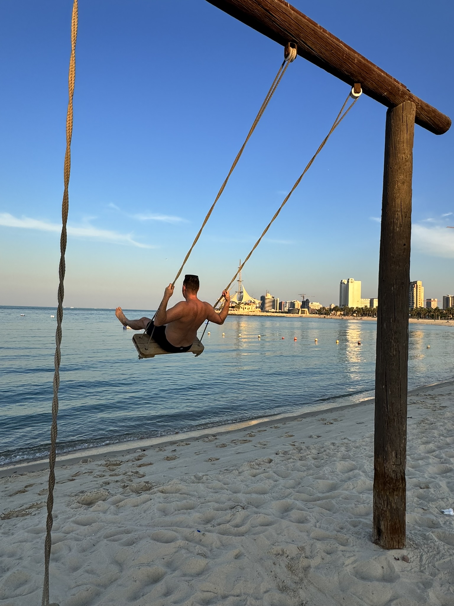 To najbardziej znana i popularna plaża w Kuwejcie wzdłuż której ciągnie się promenada. Jest uporządkowana i dobrze utrzymana. Zobaczycie tu jasny piasek, łagodne wejście do morza i strefy wypoczynkowe z ławkami, palmami i placem zabaw. Idealne miejsce zarówno do wypoczynku jak i biegania czy jeździe na rowerze. Wieczorami oświetlona promenada robi wyjątkowe wrażenie. Choć kąpiel jest możliwa, wiele osób przychodzi tu miałem wrażenie głównie dla widoków i spacerów.