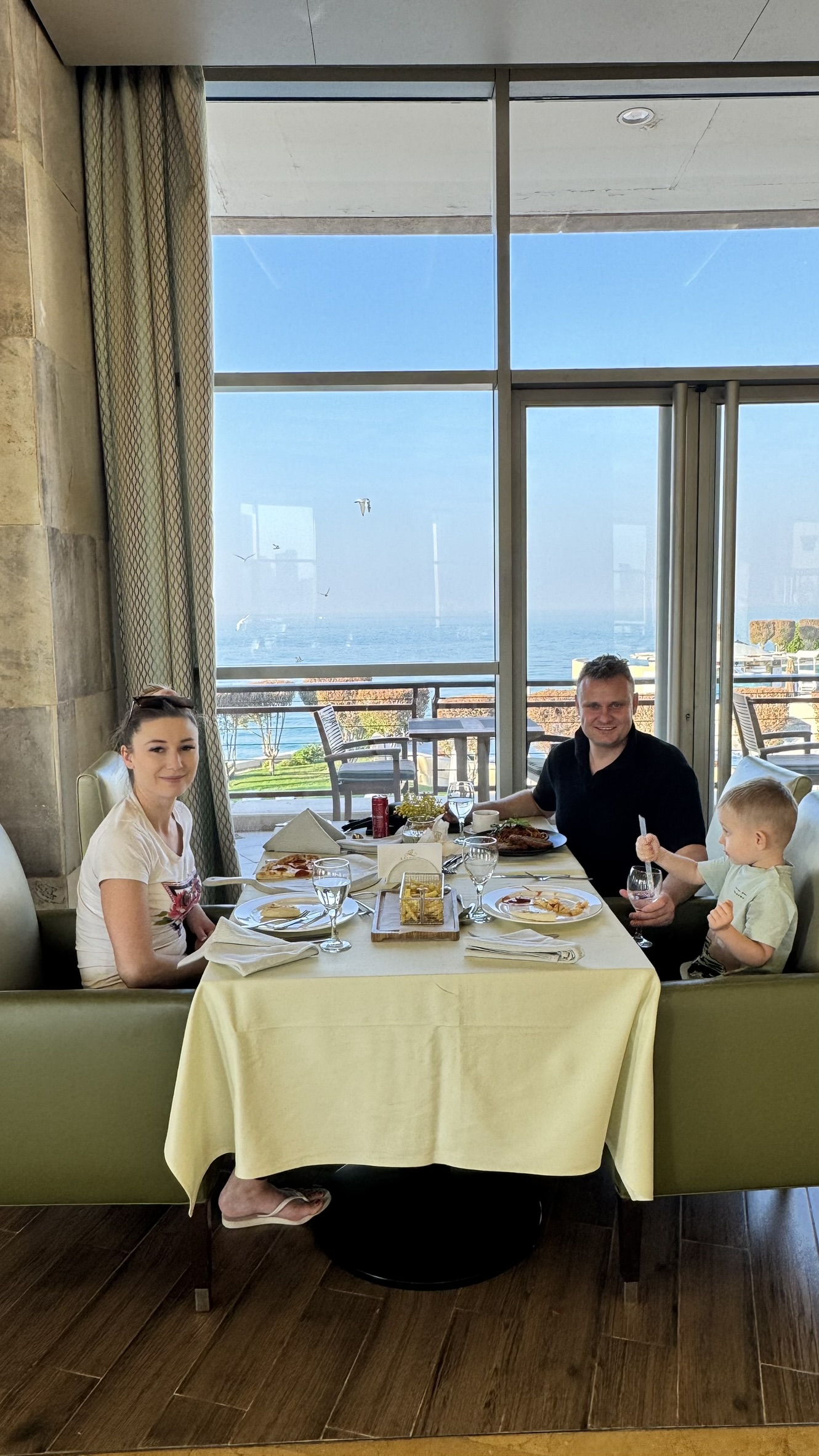 Podczas jednego z wieczornych zabaw przy basenie Kizia zamówiła pizzę, kładąc ją obok leżaków. Karmiąc Oliwera biegała za Nim z jednym kawałkiem pizzy i wyobraźcie sobie, że w tym czasie pizza została zjedzona przez miejscowe koty hehehe, były na tyle bezczelne, że zostawiły tylko krawężniki! Jedzenie w hotelu było bardzo dobre zaczynając od różnorodnego śniadania po smaczne i urozmaicone obiady. Kolacje organizowane były na plaży przy świecach w tle grającej muzyki na żywo przez orkiestrę. Stwierdziliśmy jednogłośnie, że hotel Marina w Kuwejcie był najlepszy w jakim kiedykolwiek byliśmy! Cena za dwie dobry to około 2500 zł ze śniadaniami.