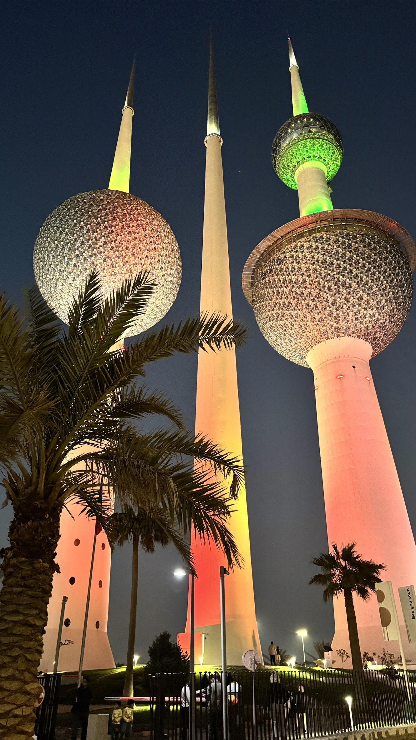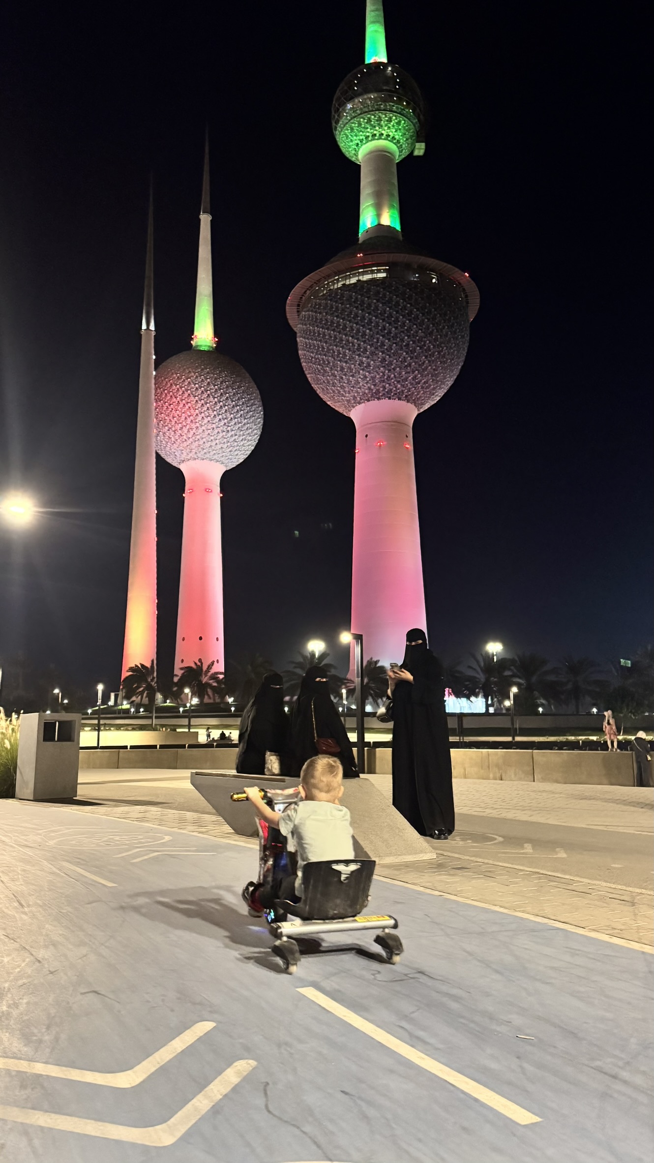 Zwiedzanie zaczynamy od najbardziej rozpoznawalnych symboli Kuwejtu czyli Wieży Kuwejckich, łączących w sobie funkcję użytkową, turystyczną i reprezentacyjną. To 3 wieże z czego najwyższa ma 187 metrów i pełni rolę turystyczną. Znajduje się tu restauracja i obrotowy taras z widokiem na całe miasto. Na szczyt można wjechać windą kupując bilet TYLKO on-line w cenie 3 dinarów kuwejckich czyli około 35 złotych. ( dziecko za darmo) Wieża otwarta jest w godzinach 8:00 -23:00, ale polecam wjechać tam wieczorem lub o samym zachodzie słońca kiedy wszystko jest rozświetlone. Pozostałe dwie wieże są nieco niższe, jedna z nich pełni rolę zbiornika wodnego, a kolejna służy do oświetlania pozostałych i utrzymywania infrastruktury elektrycznej. Wokół całego terenu znajduje się duża promenada zagospodarowana w atrakcje dla dzieci.
