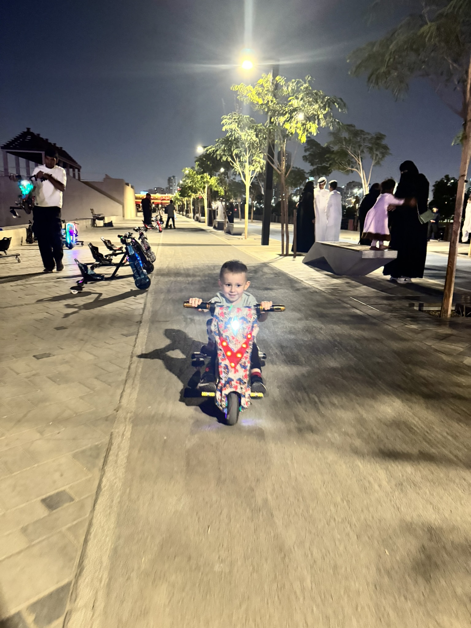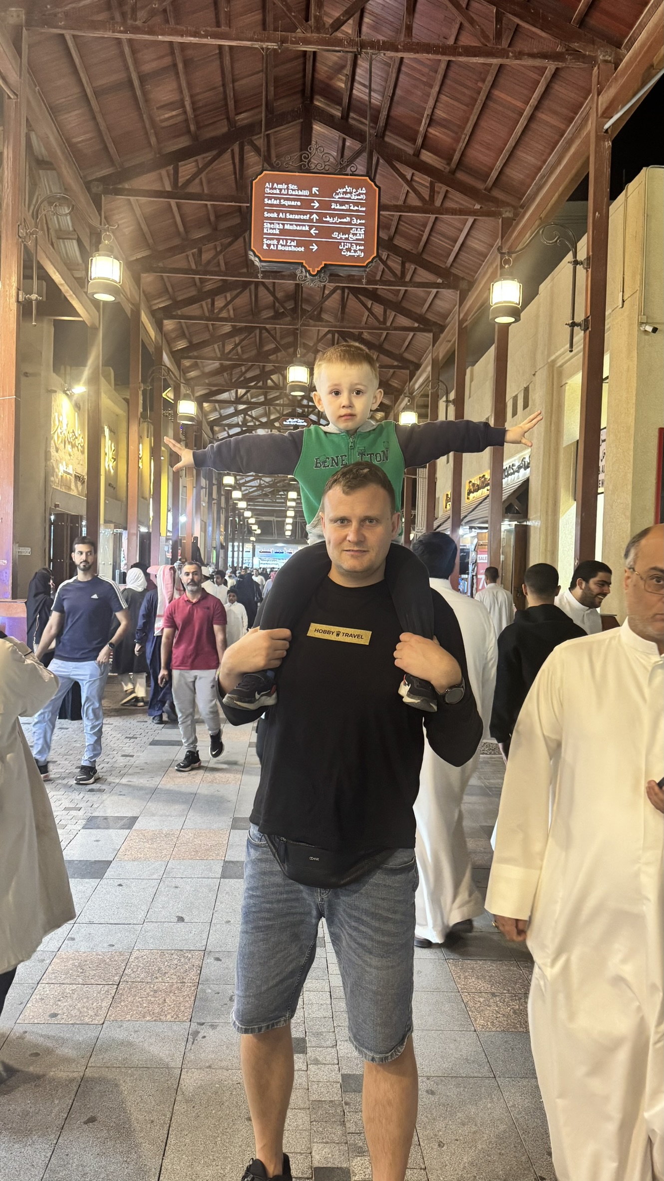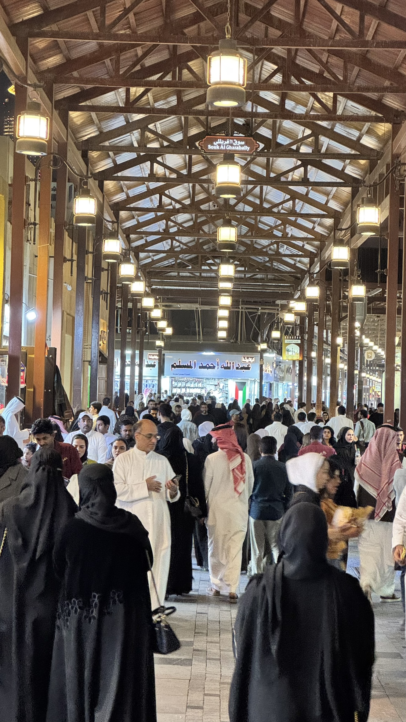 Jesteśmy na tradycyjnym arabskim bazarze, który pozwala poczuć atmosferę dawnego miasta, sprzed epoki ropy i nowoczesnych wieżowców. To idealne miejsce, by poznać lokalną kulturę i kuchnię, targ ma podobno ponad 200 letnią historię! Może tu kupić naprawdę wszystko, jest głośno i tłoczno. My znaleźliśmy magnesy, talerzyki i szybko stąd uciekliśmy bo jeszcze chwila i Oliwier na pewno by coś popsuł lub potłukł. Wyjście stąd wcale nie było takie proste, targ tworzy jeden wielki labirynt wąskich uliczek! Kizia była atrakcją ponieważ jako jedyna świeciła się europejskim wyglądem nie mając na sobie muzułmańskiego ubrania w postaci burkę. Głos modlitw dochodzący z meczetów nadawał temu miejscu specyficzny klimat.