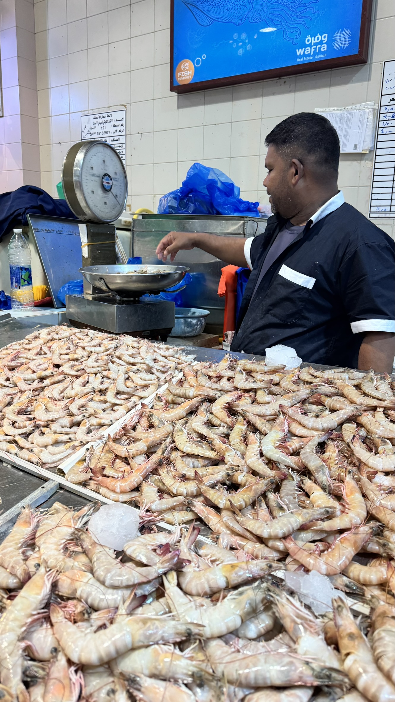 Sercem nadmorskiego handlu w Kuwejcie jest Sharq Fish Market czyli ogromny targ do którego trafiają ryby prosto z zatoki Perskiej. Zobaczyliśmy tu min. krewetki, kraby i kalamary. Towar jest układany na lodzie i sprzedawany w formie aukcji lub klasycznej sprzedaży. To co jednak zapamiętam z tego miejsca to niesamowity smród obranych ryb do tego stopnia, że Kizia nie dość, że prawie zwymiotowała to później nasze ubrania przesiąkły tym zapachem i musieliśmy się szybko przebrać. Tak czy siak to idealne miejsce, by poznać kulturę Kuwejtu „od kuchni”. !