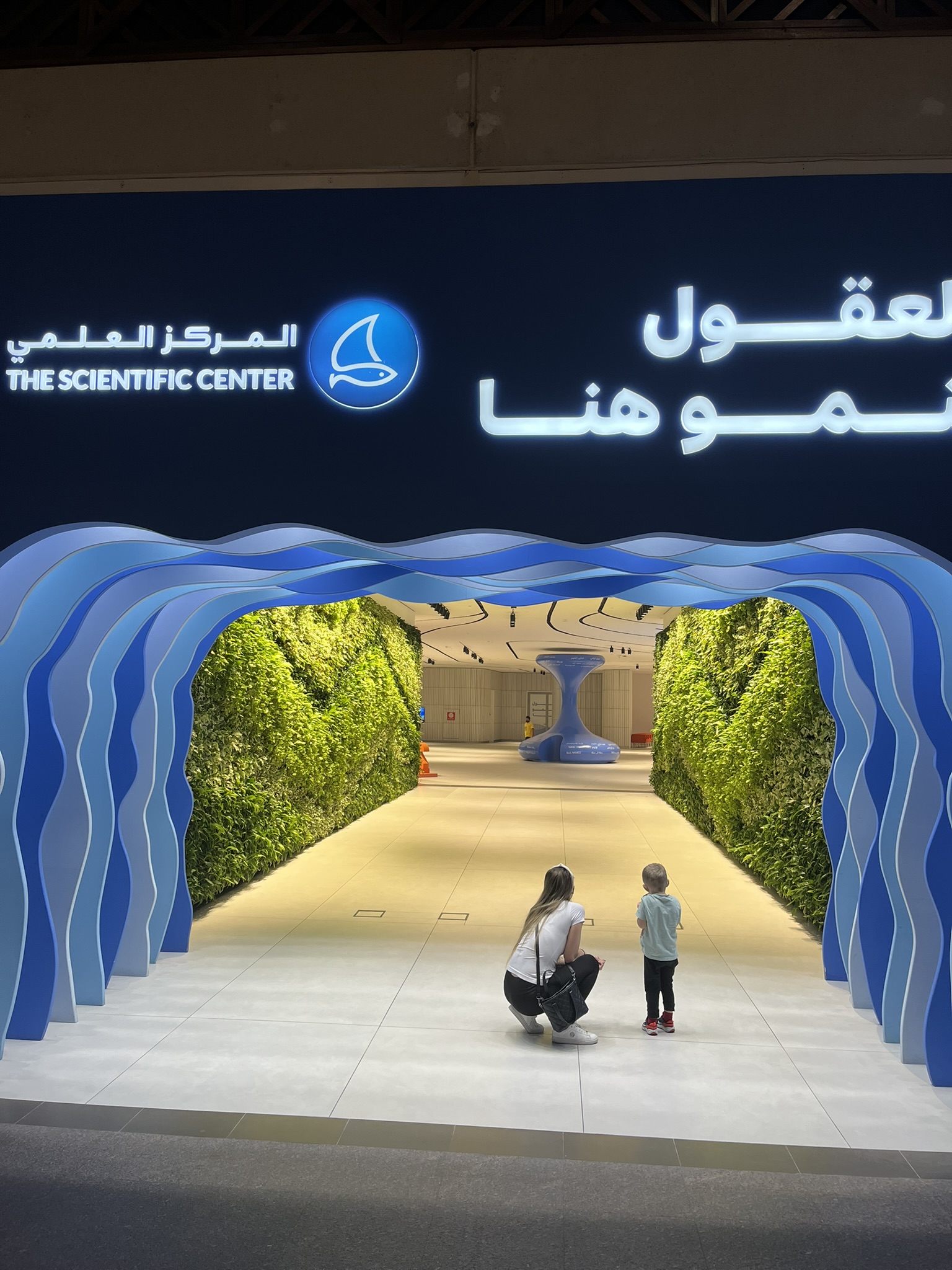To duży kompleks edukacyjny położony nad Zatoką Perską w dzielnicy Salmiya, łączący naukę, ekologię, rozrywkę i kulturę. Otwarte jest do godziny 22:00 i jest idealnym miejscem na wizytę z dziećmi. Bilet w cenie około 115 złotych / osobę łączy wejście do wszystkich atrakcji, którymi są: Aquarium, MAX Theater czyli sala kinowa 3D oraz Discovery Place – interaktywna część zjawisk fizycznych. To bardzo nowoczesna i angażująca przestrzeń edukacyjna gdzie spędziliśmy około dwie godziny. Mnie osobiście najbardziej podobał się podwodny świat i zwierzęta takie jak rekiny, węże czy żółwie. Oliwier najwięcej czasu spędził na pobliskiej bawialni z dużą zjeżdżalnią.